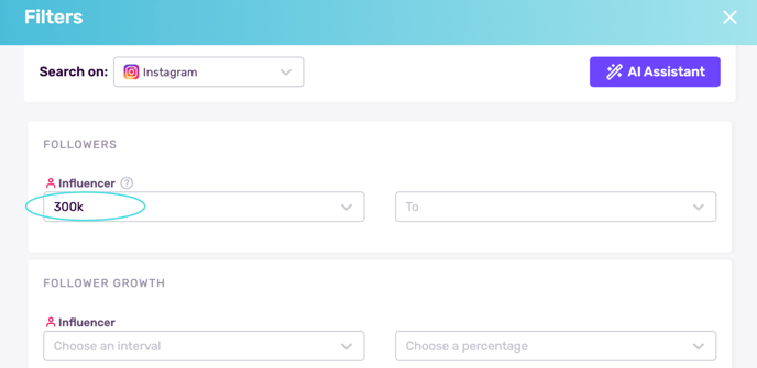 Once you have finished crafting your query, hit generate and the AI assistant will instantly autofill your search filters (network, gender, audience size, topic, etc. ) to match your request.