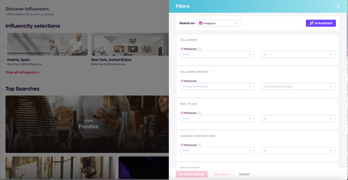 This is a brand-new way to search smarter inside Influencity: the AI Assistant in Discover. This update makes it easier than ever to find the right influencers by letting AI help you craft prompts that automatically translate into the right filters.