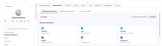 - Influencer Detail → Brand Safety tab