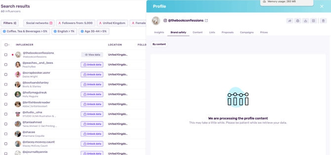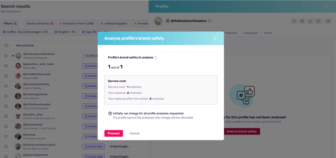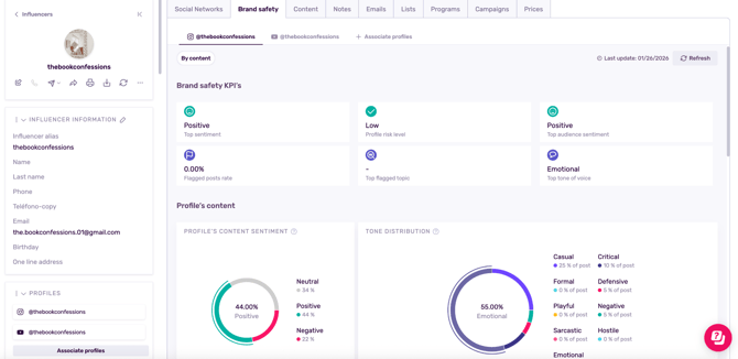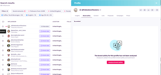 Note: Once you decide to analyze a profile’s brand safety, you’ll be shown other associated profiles from other socials within the tab.