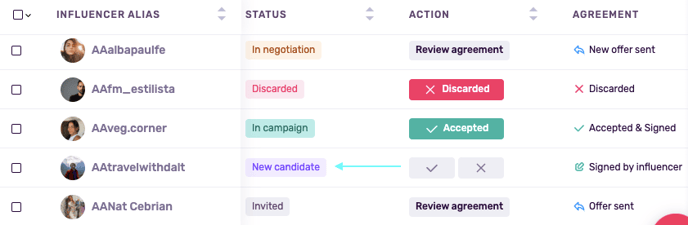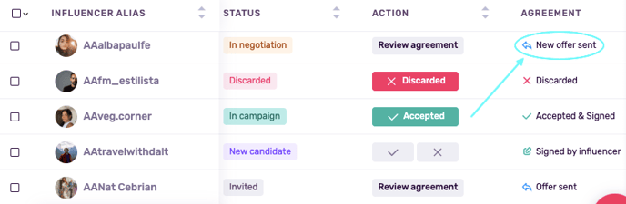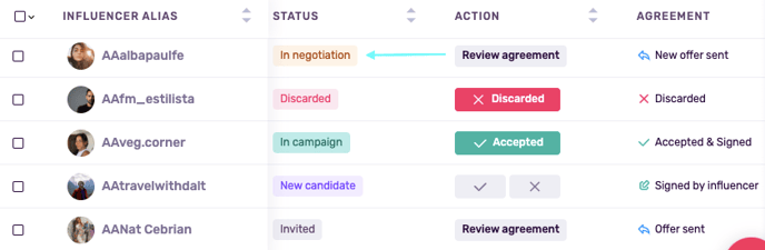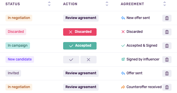 Negotiations can involve several back-and-forth steps, especially when multiple influencers are part of the same campaign. To simplify tracking, each participant now has a status label that updates automatically as actions are taken, be it a new offer, a signed deal, or a closed opportunity.