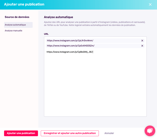 Par exemple, nous avons copié et collé les URL de 3 publications pour les ajouter à un rapport via analyse automatique. Cela signifie que 3 analyses seront déduites de notre total mensuel.