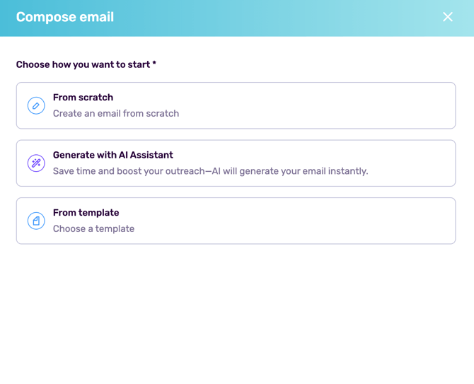 Click Add New Email. You can write from scratch, use a template, or generate text with AI.
