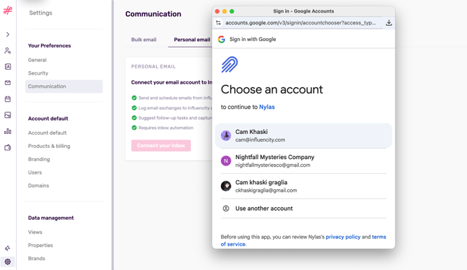 Note: Each user on your team must connect their own personal email if they wish to send sequences.