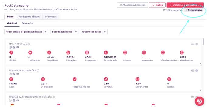 Pode atualizar qualquer parte da configuração do seu rastreio, incluindo influencers, critérios e datas, em qualquer altura.